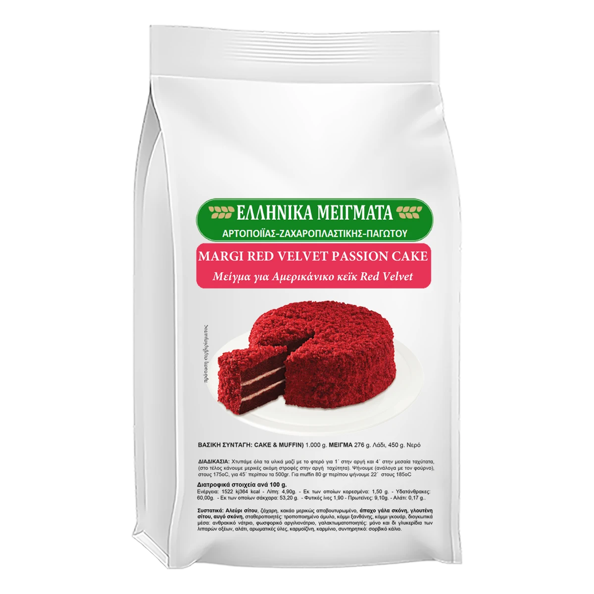 Το Margi Red Velvet Passion Cake είναι ένα premium μείγμα κέικ λαδιού που συνδυάζει ευκολία και κορυφαία ποιότητα. Με εντυπωσιακό κόκκινο χρώμα και υπέροχη γεύση, το μείγμα περιέχει ήδη αυγό στη σύνθεσή του, προσφέροντας ευκολία στην παρασκευή και σταθερότητα στο τελικό αποτέλεσμα.