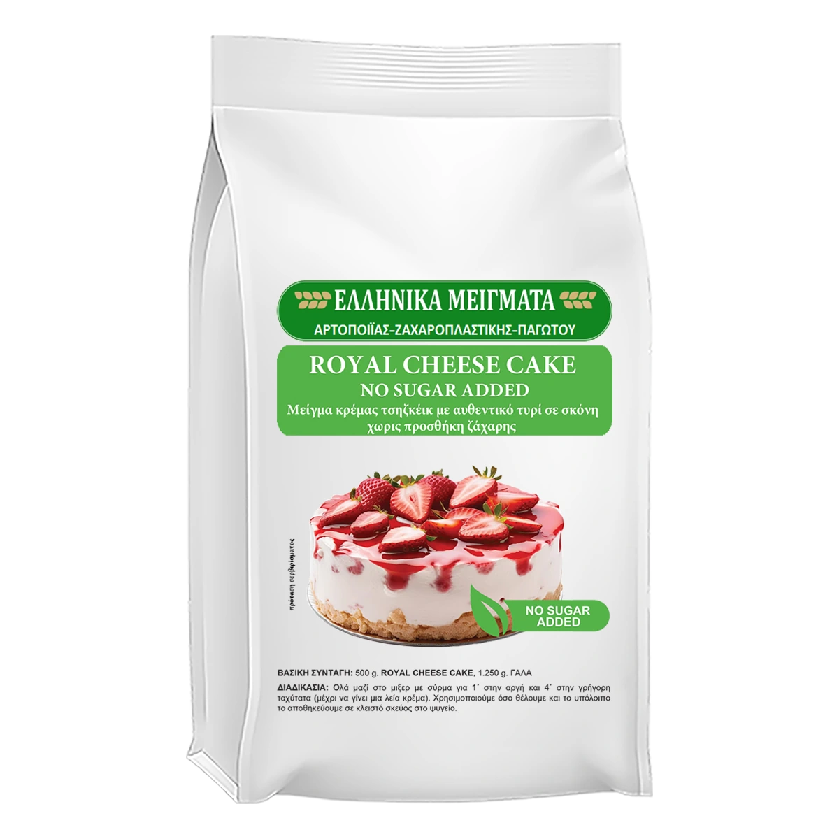 Το Royal Cheese Cake No Sugar Added είναι επαγγελματικό μείγμα για την παρασκευή κρέμας cheesecake, κατάλληλο τόσο για κρύα όσο και για ψημένη εφαρμογή, χωρίς προσθήκη ζάχαρης.
