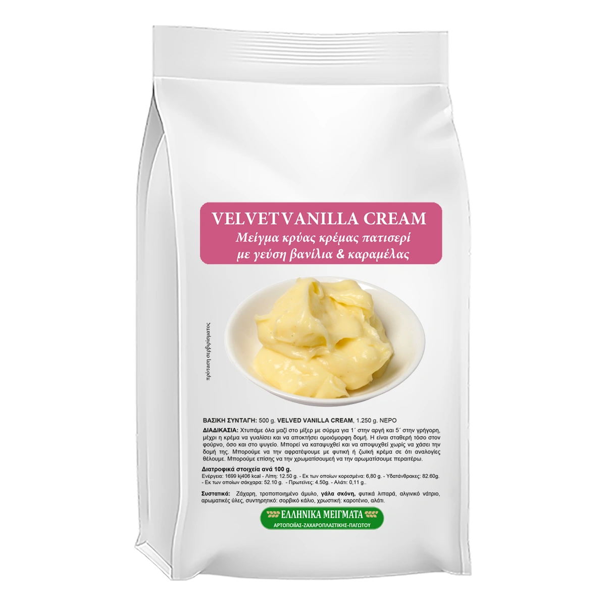 Το Velvet Vanilla Cream είναι επαγγελματικό μείγμα κρέμας ζαχαροπλαστικής με πλούσια γεύση βανίλιας και χαρακτηριστικό χρυσοκίτρινο χρώμα.